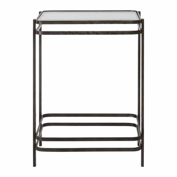 An accent piece, this inlaid glass topped side table has a brushed metal frame Dimensions:Item Width: 485 mm Item Depth:...View item details