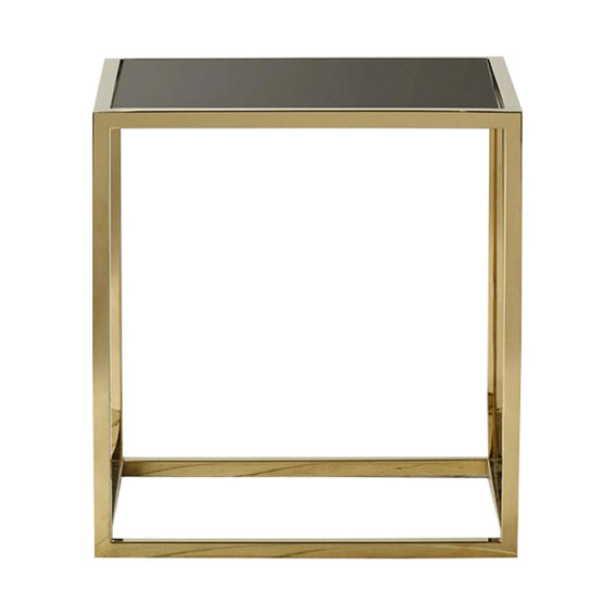 Perfect for creating drama in your living space. This range features a bright gold stainless steel frame and black tinted glass tops.