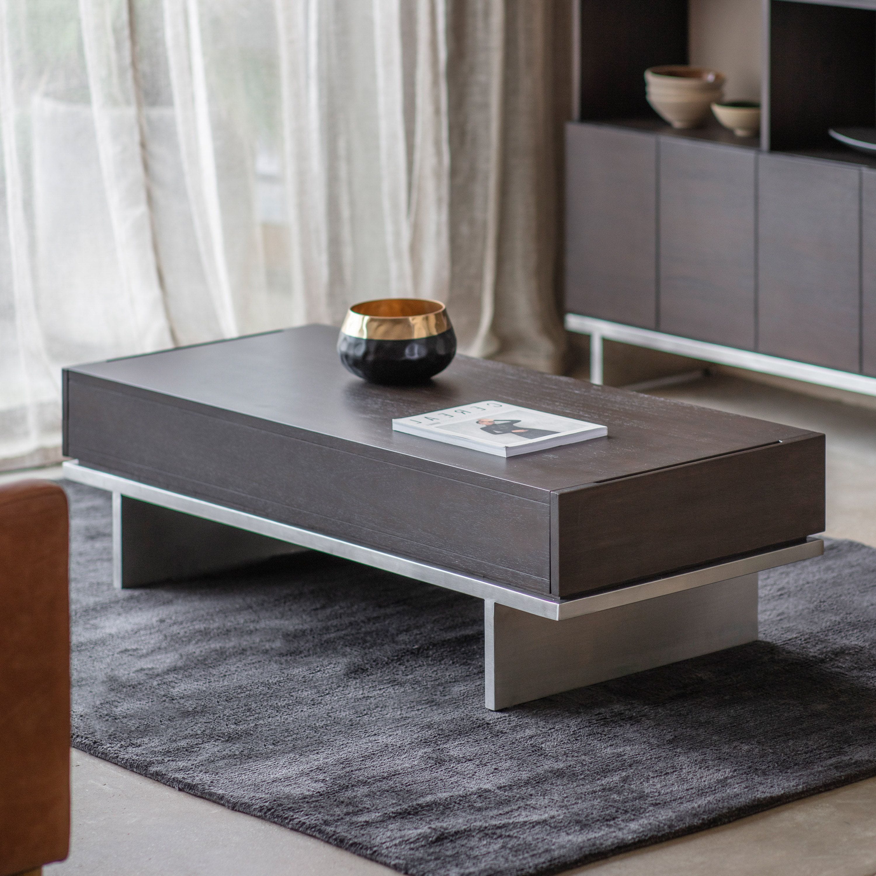 The stunning Como Coffee table offers a sophisticated modern look, with its clean, simple lines. The dark wood finish pairs beautifully with the brushed steel legs, offering an eye-catching contrast, whilst the two drawers add practical storage. For a coordinated look, pair with the other pieces from the Como range.