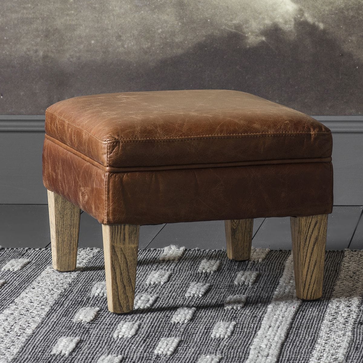 This beautifully plump cushioned footstool is the perfect partner to the Mr. Paddington armchair, featuring top grain vintage brown leather and solid ash legs.