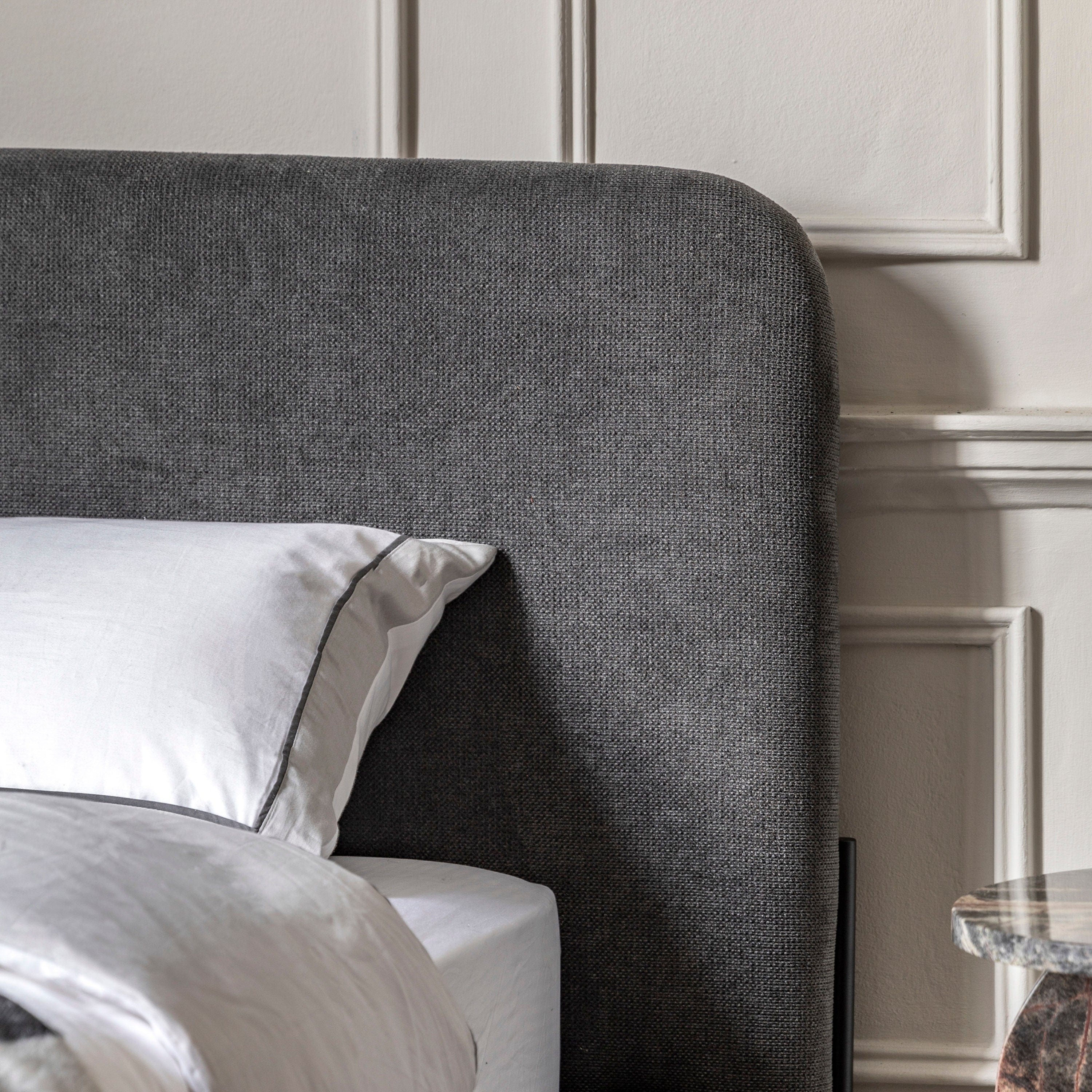 This king size bed modern design and clean lines will suit a wide variety of interiors with ease. The sleek black metal legs complement the soft curves of the simple rounded headboard, creating an effortlessly cool look that will add a contemporary touch to your bedroom.
