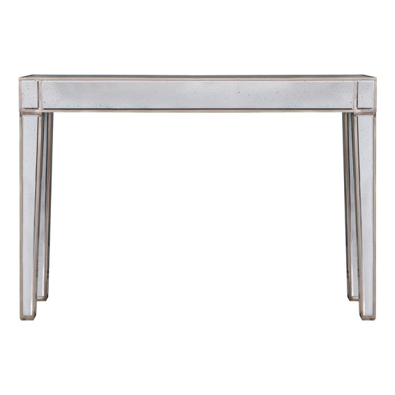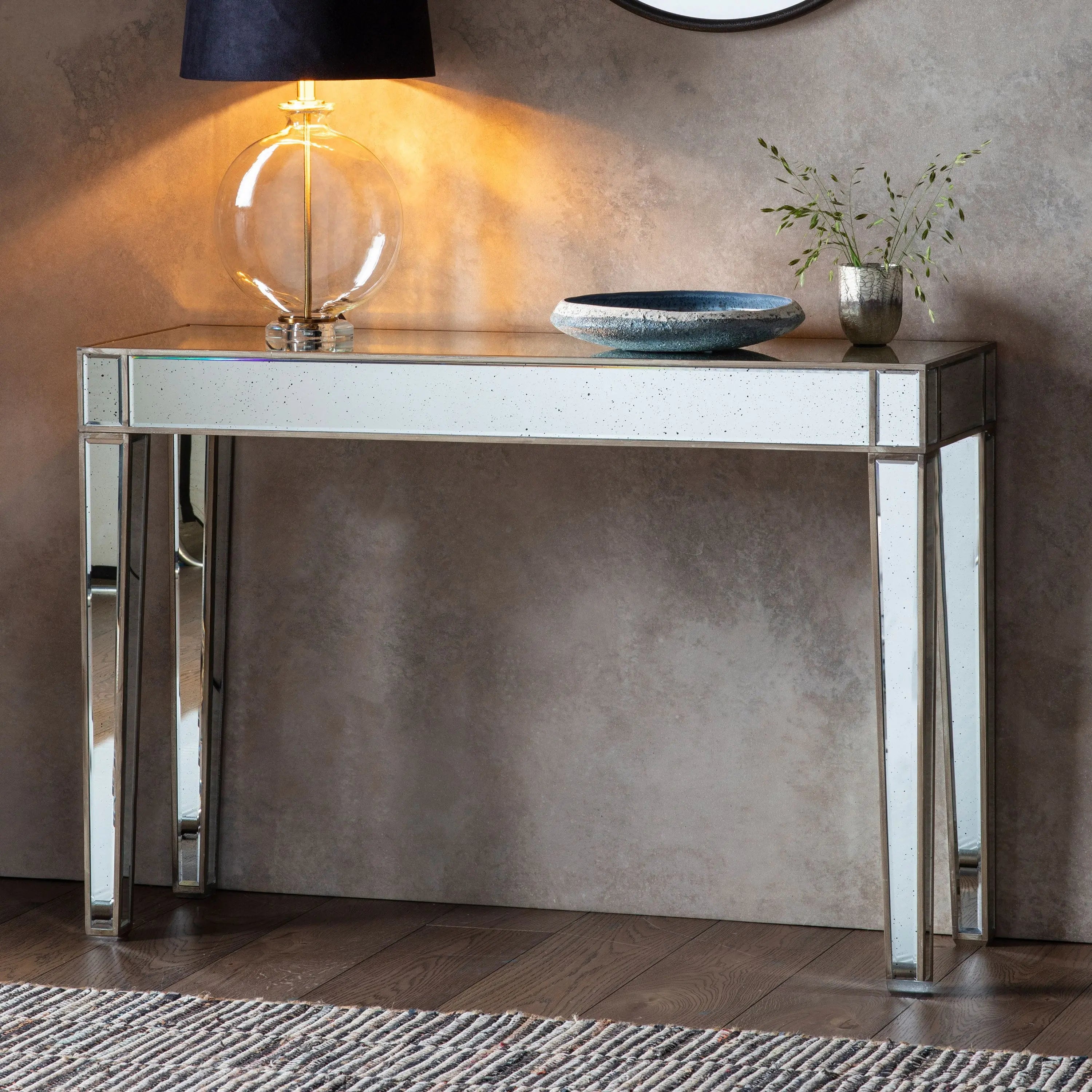 Contemporary design with an antique finish. Perfect for adding the finishing touch to your home. Glass pannels are finished with black paint antique details for a well loved finish. Complemented by a painted soft silver finish on the edging.