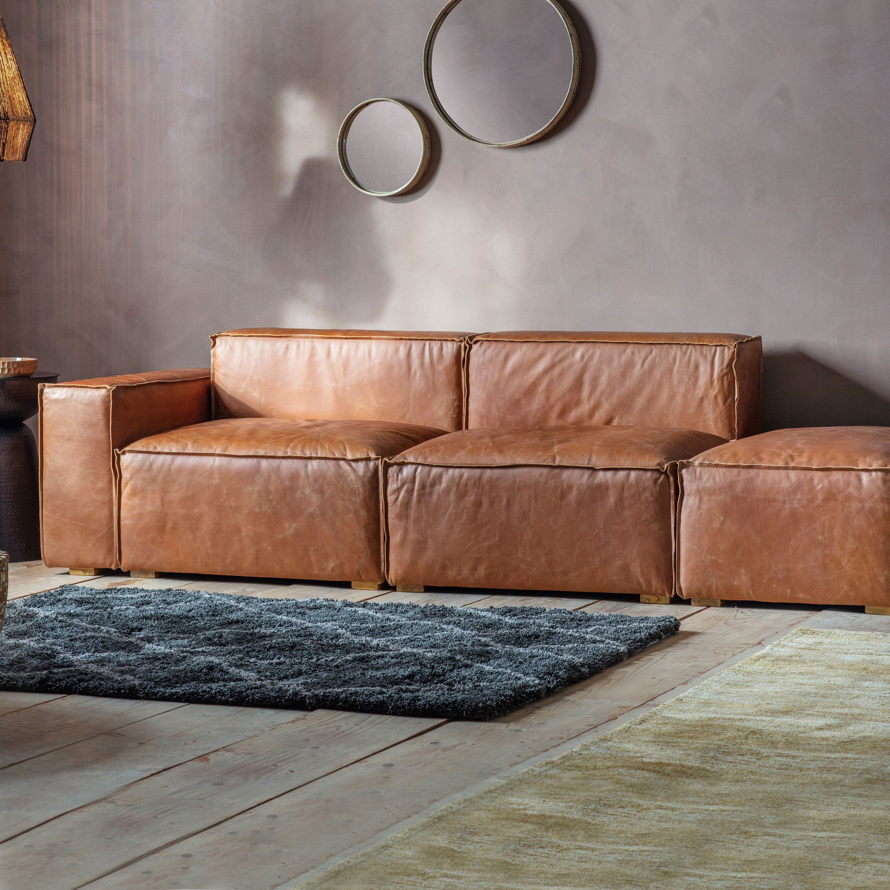 The Calgary Sofa makes an eye-catching feature piece. It is upholstered in top grain full leather hide with external seams to add detail and interest.