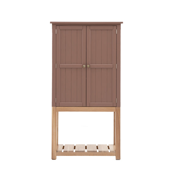 A modern update on a classic farmhouse style cabinet. Offering plenty of space with an upper cupboard and a lower shelf, this cabinet is a great storage solution. The traditional rustic elements are given a contemporary twist with the hand painted textured finish on top paired with the solid oak base.