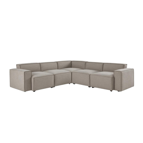 Your living room is your playground, so you make the rules. Whether it's two seats or ten, left or right corner, with or without an ottoman, you can build a sofa that suits your lifestyle. The corner sofa comprises one left module, a right module, two single modules, and a corner module—an ideal setup for those with a full house. The modules stay together with interlocking clips on the base of each module, with solid wood feet and plastic glides to keep your sofa firmly in place.