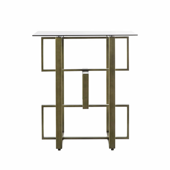 A stunning geometric metal base in a bronze finish paired with smoked glass tops create the contemporary, eye-catching Thornton Side...View item details