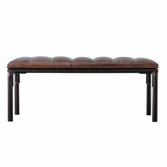 The Tiverton Bench combines a quality full leather hide seat, with stitch detailing, and a simple metal base with a rustic finish to produce this stylish and practical bench.