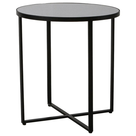 Make a statement with this trendy side table featuring a contemporary smoked grey glass top set in a mattet black metal frame with stylish cross frame detailing for strength and stability.