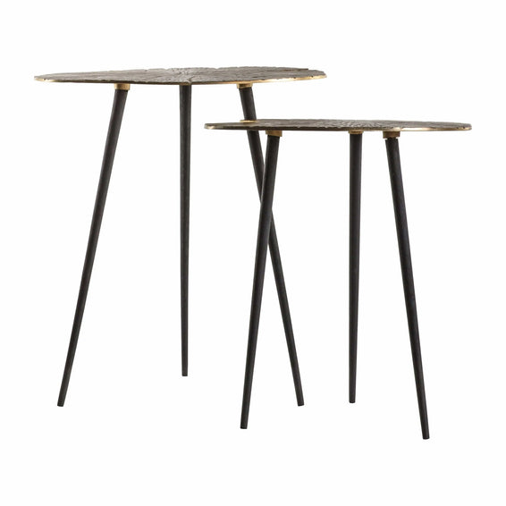 The gold tops pair perfectly with the slim black metal legs. The Valance Nest of Tables are also available with silver tops.